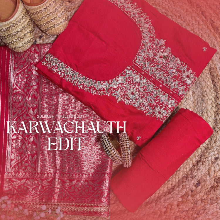 Rich Red Chanderi Kurta Set with Banarasi Dupatta