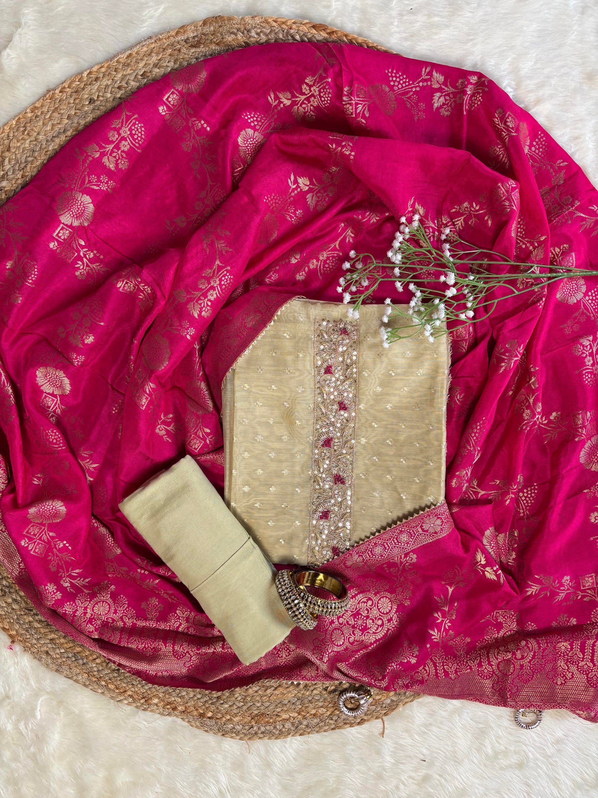 Beige Chanderi Embroidered Kurta with Banarasi Dupatta