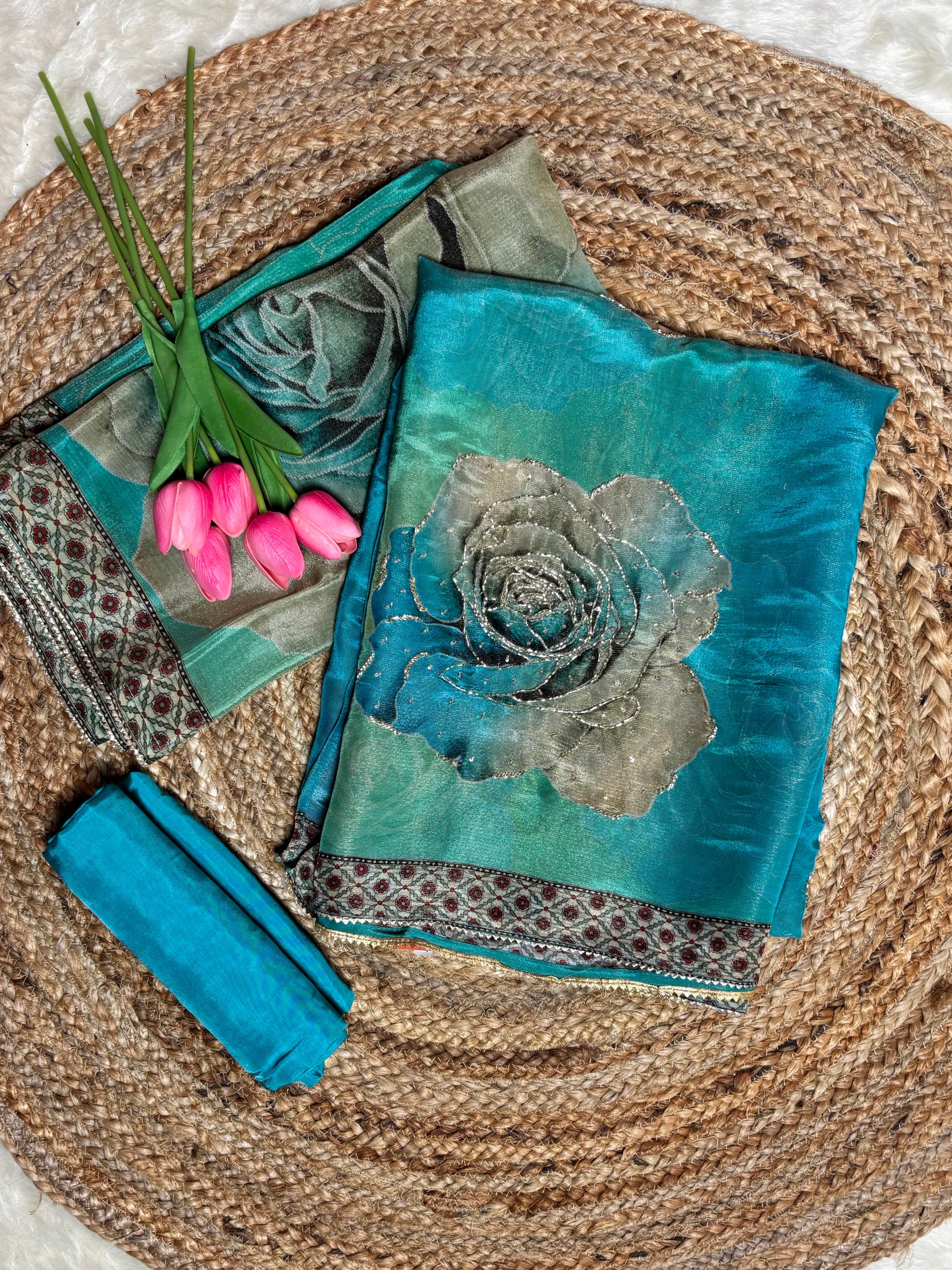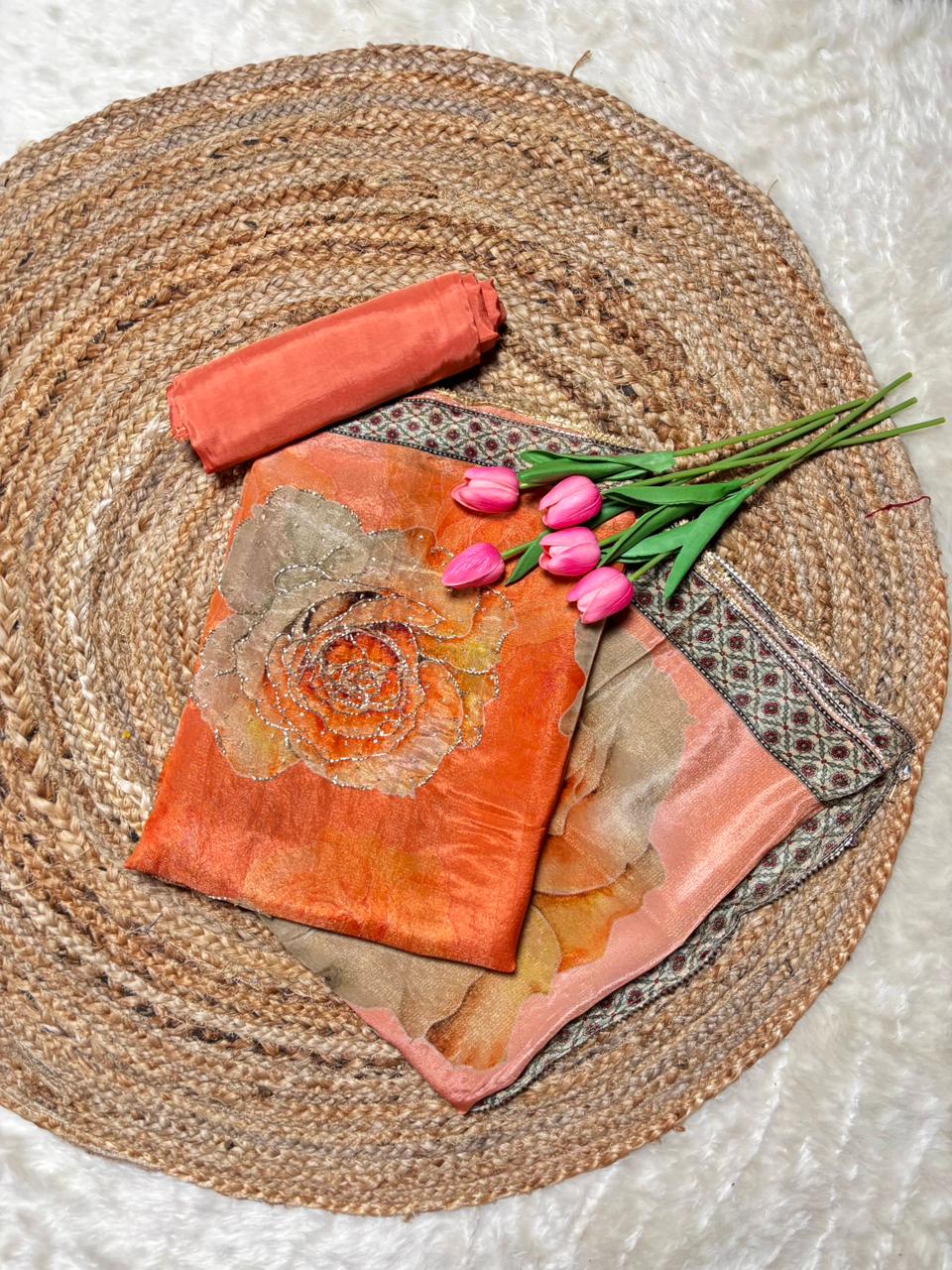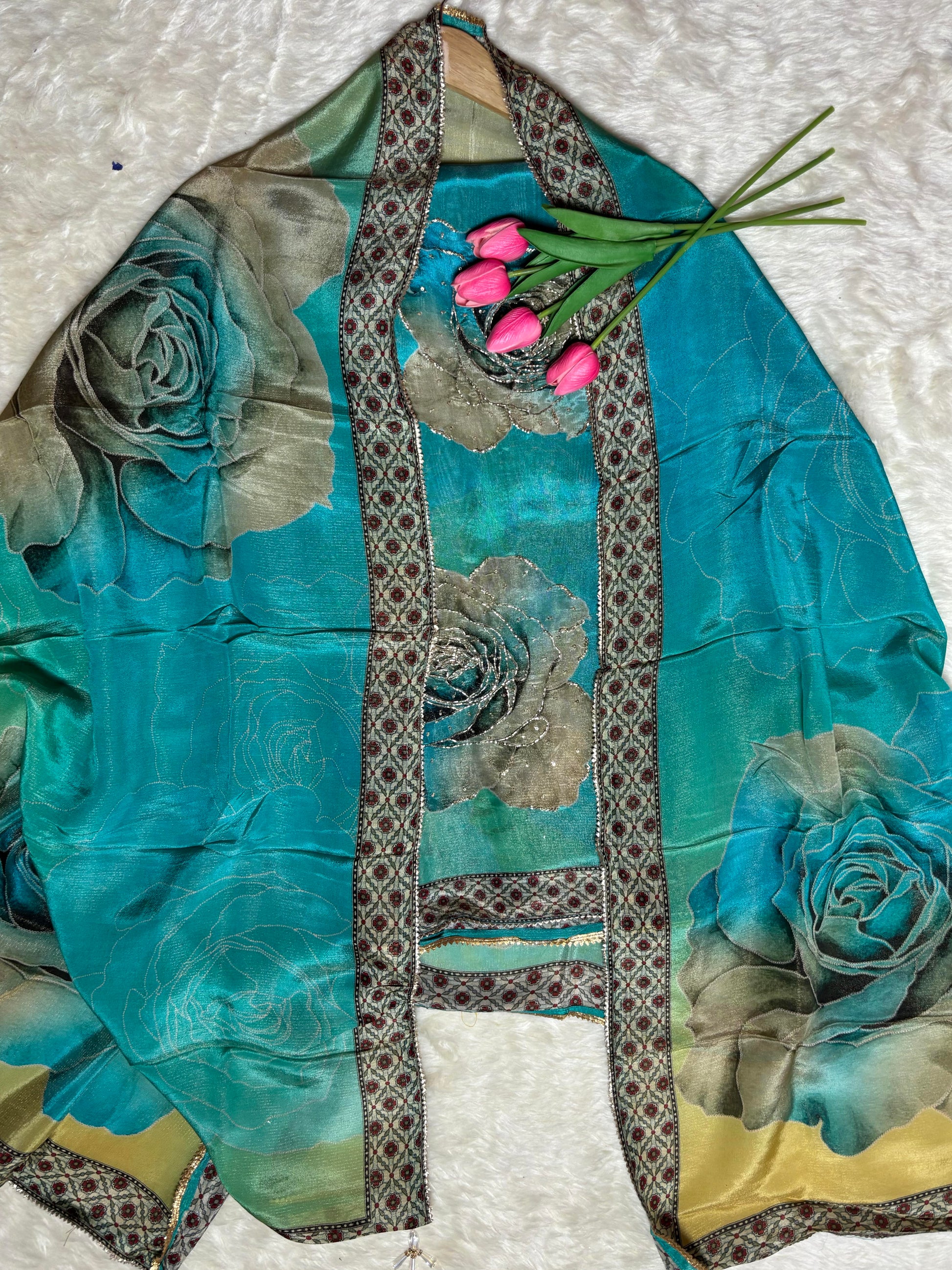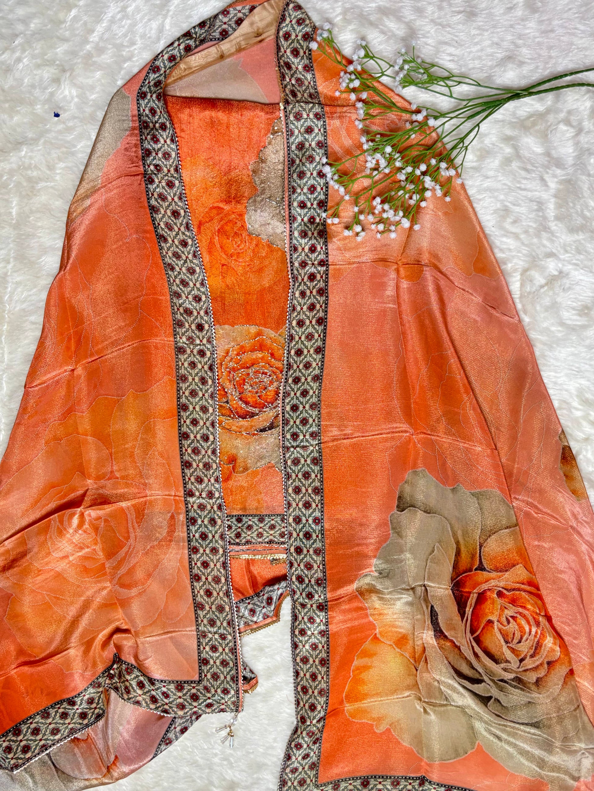 - Dupatta: Multicolour tissue crepe with floral motifs soft and elegant